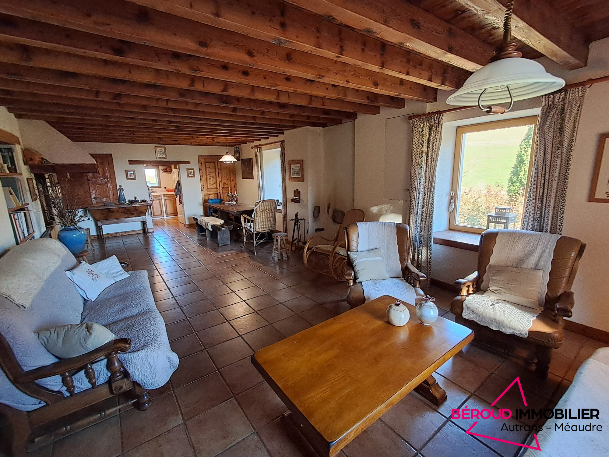 EXCLUSIVITÉ - AUTRANSCette bâtisse traditionnelle située dans un cadre verdoyant, offre une vue imprenable sur la nature environnante. Avec ses 130 m² habitables et son terrain de 1420 m², cette propriété vous offre une espace de vie de 40m², ouvert une le jardin. A l'étage l'espace nuit est composé de 4 chambres, toilettes et salle de bains. Une ancienne grange de plus de 200m² permettra de réaliser de nombreux projets. RARE A LA VENTE.